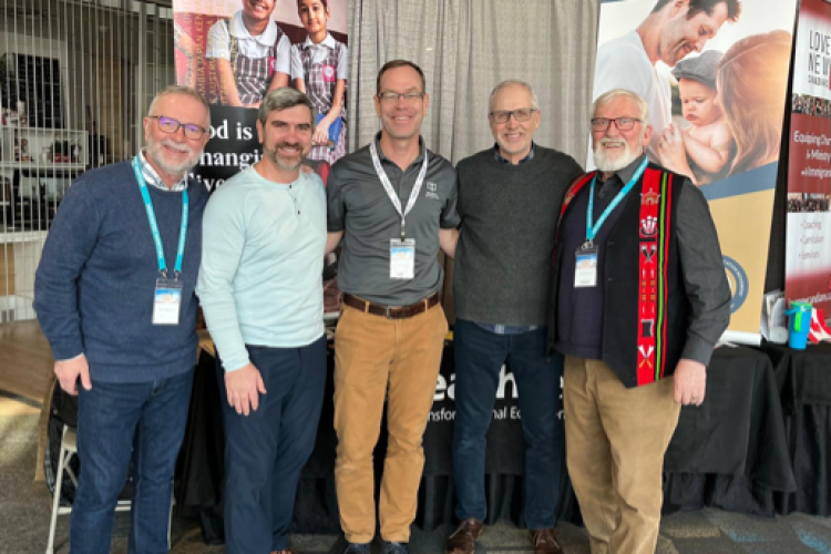 *Photo: L-R Randy Dueck (School Services), Jake Dyck (Canadian National Director) , Keith Cameron (husband of Amanda-Canadian Mobilization), and Nigel Spencer (Beyond Borders)